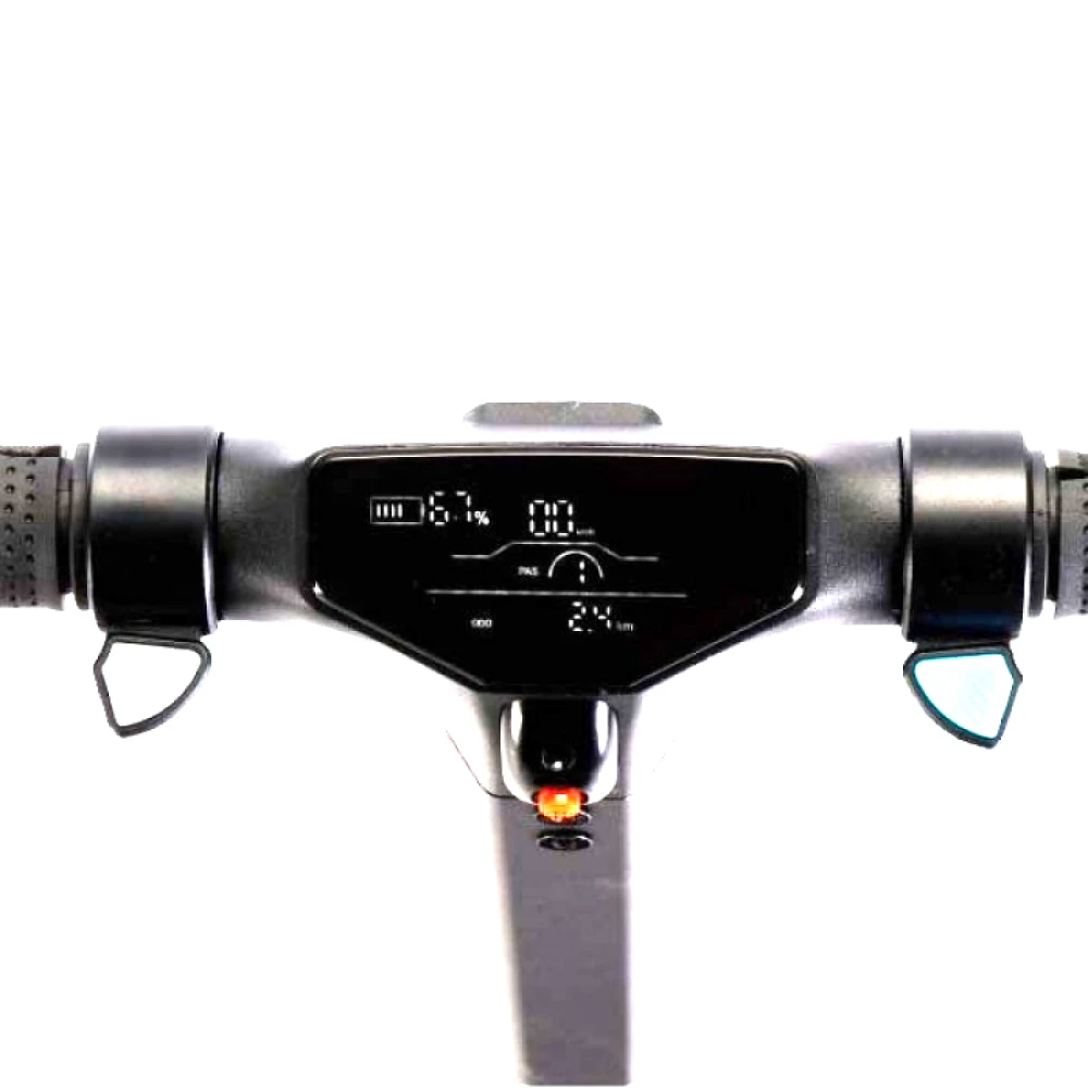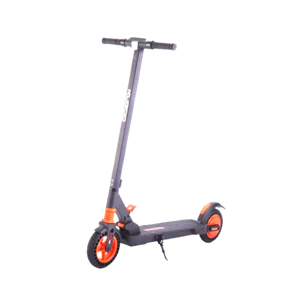 Крепкий корпус из алюминия выдержит нагрузку до 120 кг. Небольшая масса 14,5 кг и высота 108 см позволяет легко сложить и перенести самокат. Самокат оборудован стильными и прочными колёсами с оранжевыми элементами, диаметром переднего и заднего колеса 8 дюймов. Благодаря наличию амортизаторов поездка по городу, несмотря на несовершенства дороги, будет плавной и мягкой. Электронная тормозная система уменьшит расход электроэнергии и сохранит на более долгое время тормозные колодки.