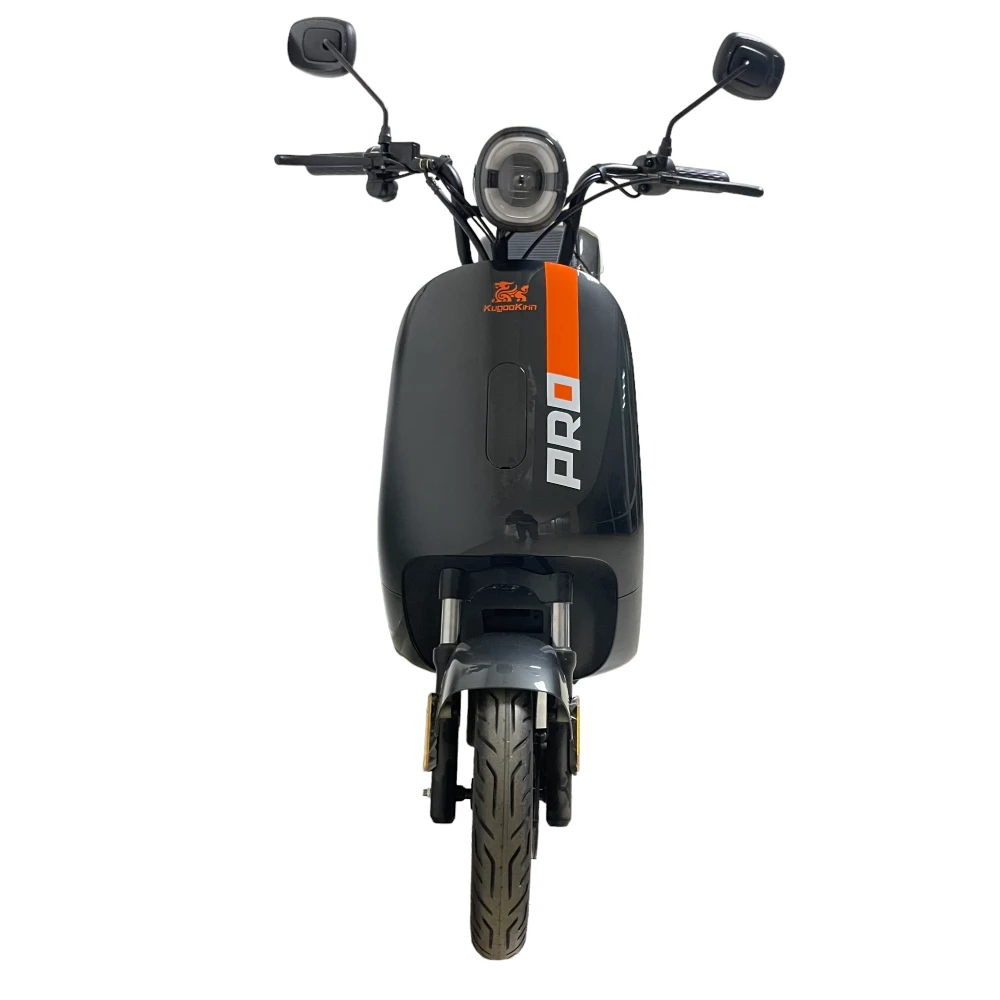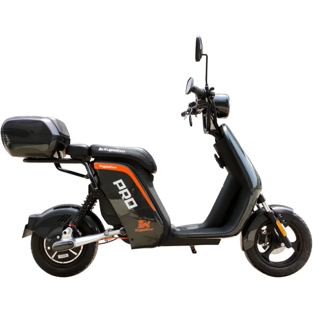 ЭЛЕКТРОСКУТЕР KUGOO V PRO 20 AH - мощный электроскутер в черном цвете выглядит серьезно и устрашающе в сравнении с предыдущей линейкой тс. Переливающееся под солнечными лучами лакокрасочное покрытие с брендовой надписью нравится продвинутым райдерам и новичкам. Модель, изготовленная с учетом пожеланий пользователей и наблюдений производителя, стала лидером продаж этого года. Купить электробайк выгодно, по приемлемой стоимости предлагает наш интернет-магазин.