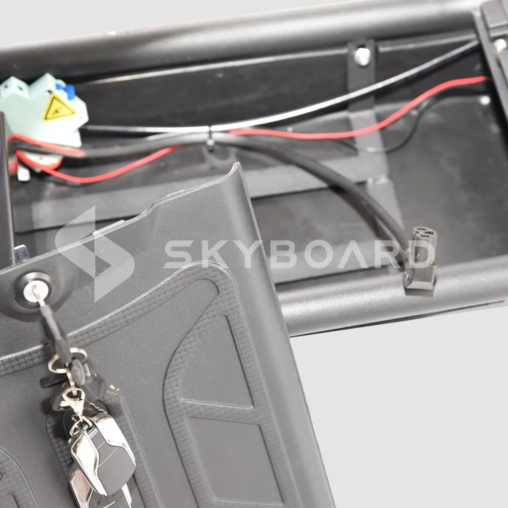 На передней панели расположен собой LED-дисплей, где отображаются все необходимые в поездке показатели – текущая скорость, пробег и уровень заряда аккумулятора.