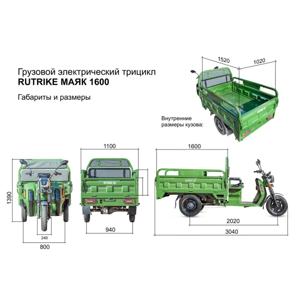 Одним из преимуществ этого трицикла является его высокая грузоподъемность. Он способен выдерживать максимальную нагрузку до 600 кг, что делает его отличным выбором для перевозки тяжелых и объемных грузов. Независимо от того, нужно ли доставить товары на рынок, провести грузовые работы или просто перевезти большие предметы, Грузовой электротрицикл Rutrike Маяк 1600 60V1000W справится с любой задачей.