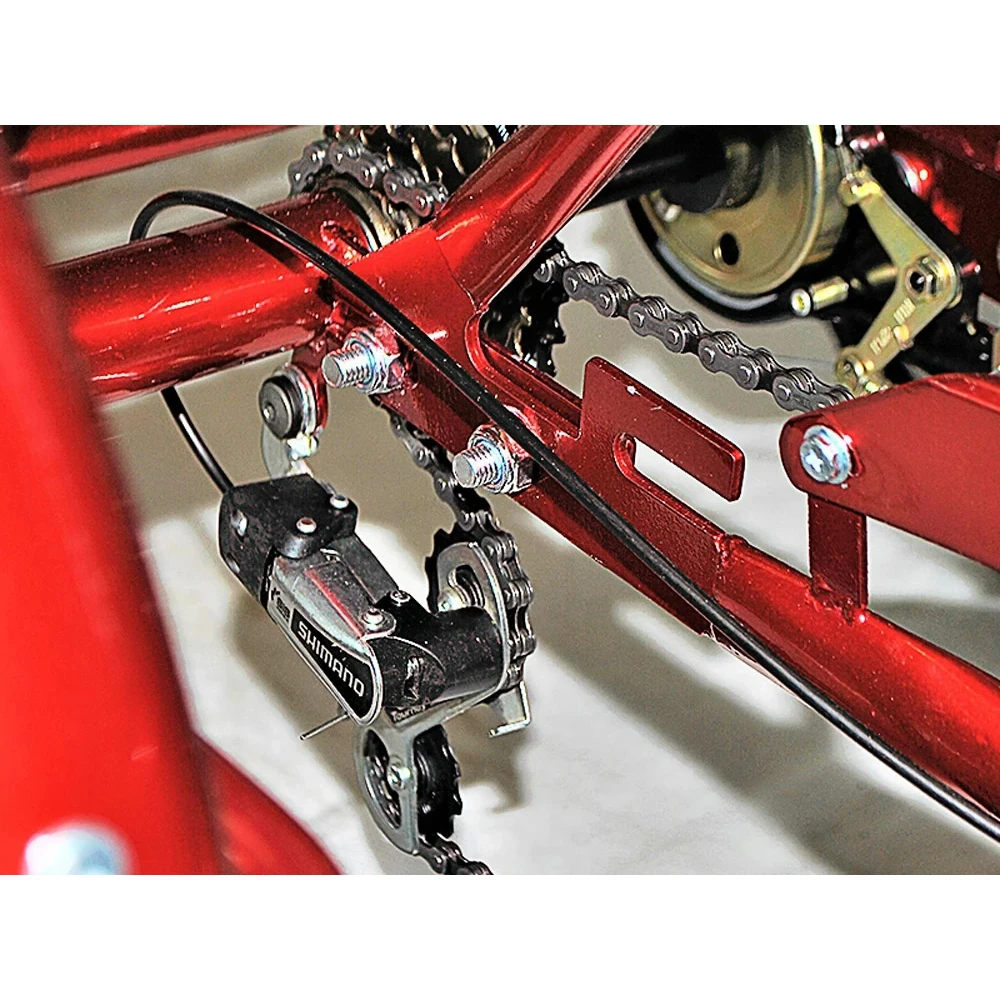 Вы сможете ездить за покупками или перевозить вещи, складывая их в съемные корзины, одна из которых расположилась сзади, а вторая - перед рулем. Большой размер колес в 24 дюйма позволит преодолевать любые ямки и неровности в комфорте.