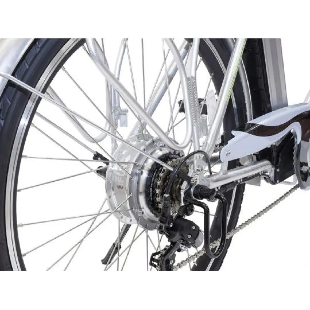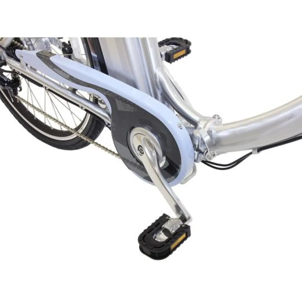 Электровелосипед Eltreco Vector оборудован двигателем мощностью 350 Вт, максимальная скорость которую развивает агрегат 45 км/ч, у него хорошая маневренность и проходимость. Дисковая тормозная система позволяет чувствовать себя уверенно на дороге. Рама байка складывается, при транспортировке он спокойно помещается в багажник автомобиля.