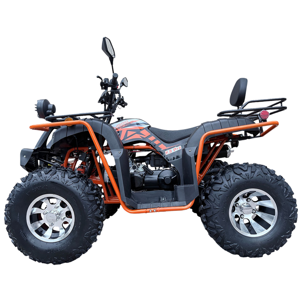 Kugoo K3 PRO — мощный и надёжный квадроцикл для взрослых, созданный для активного отдыха и уверенного передвижения по любым дорогам. Благодаря прочной конструкции и весу 175 кг, он устойчив даже на сложных покрытиях и способен выдерживать нагрузку до 150 кг, оставаясь манёвренным и удобным для двух пассажиров.