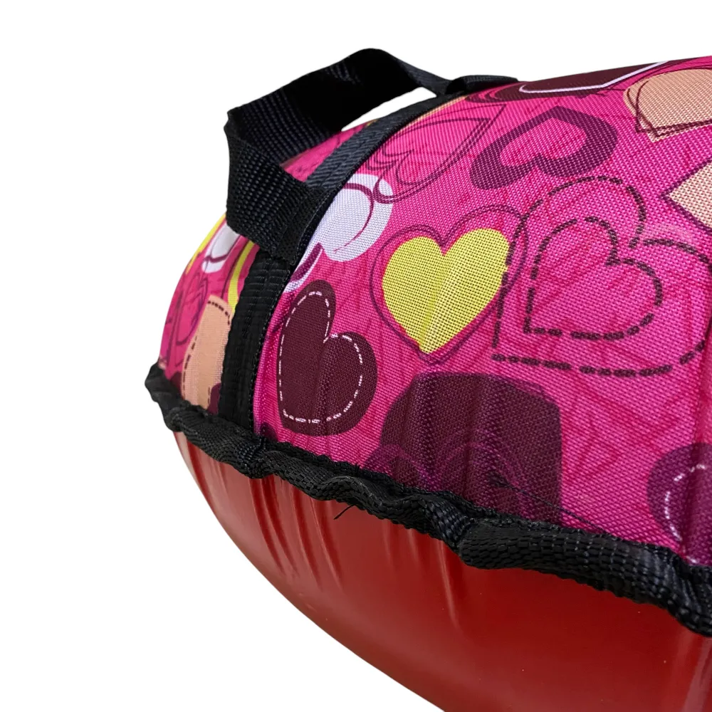 Тюбинг ПОКАТУШКИ диаметром 0,95 метра — это идеальный аксессуар для зимних развлечений и незабываемых катаний на снежных склонах! Яркий и привлекательный дизайн с разноцветными сердечками создаст атмосферу веселья и радости, делая каждую поездку уникальной. Прочные эргономичные ручки обеспечивают надежный захват, что позволяет легко управлять тюбингом в любых условиях. С буксировочным ремнем вы без труда сможете перетаскивать его на гору, а легкий вес в 2,3 кг в упаковке делает транспортировку комфортной. Особая стойкость к морозам до -45°C гарантирует долговечность и надежность даже в самых суровых зимних условиях. Погружайтесь в мир зимних приключений с тюбингом, который подарит вам радость и адреналин!